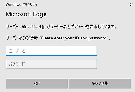 パスワード(下段):eripassword を入力し、【OK】ボタンをクリックします。 - 【ログインをクリックされたお客様】